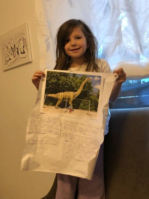 Kinder der 1c Klasse beim Homeschooling. Coole Sache, Elisabeth scheint ein echter Dino-Fan zu sein und hat ein Referat erstellt. Hoffentlich bekommen es ihre Klassenkameraden bald vorgestellt.