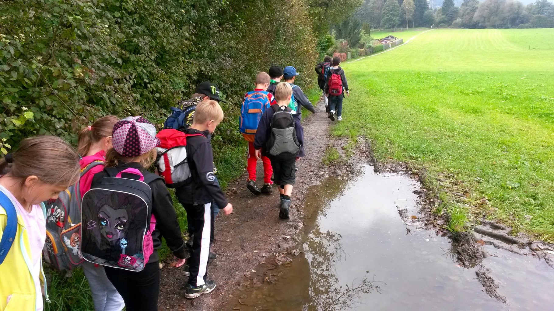 Das Wetter am autofreien Tag war uns an diesem Tag nicht wirklich gnädig. Nach langem Warten und einigem Wechsel zwischen Regen und Sonne mussten wir schließlich die Wanderung auf die Möslalm absagen und entschieden uns stattdessen zum Aubach zu wandern. Das Wetter konnte die Motivation der Kinder nicht trüben und so hatten wir am Aubach auch noch einige Zeit um uns auszutoben. Wetterfest sind wir also auf alle Fälle.