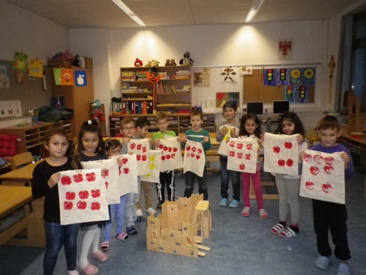 Nach einem kurzen Einführungsfilm gestalteten wir ein Apfelbuch und mit Feuereifer bedruckten wir eine Stofftasche mit Apfelmotiven. Diese Tasche ist nun das ganze Jahr über unsere Büchereitasche. Somit steht dem Lesevergnügen und einer erfolgreichen Lesekarriere nichts mehr im Wege.